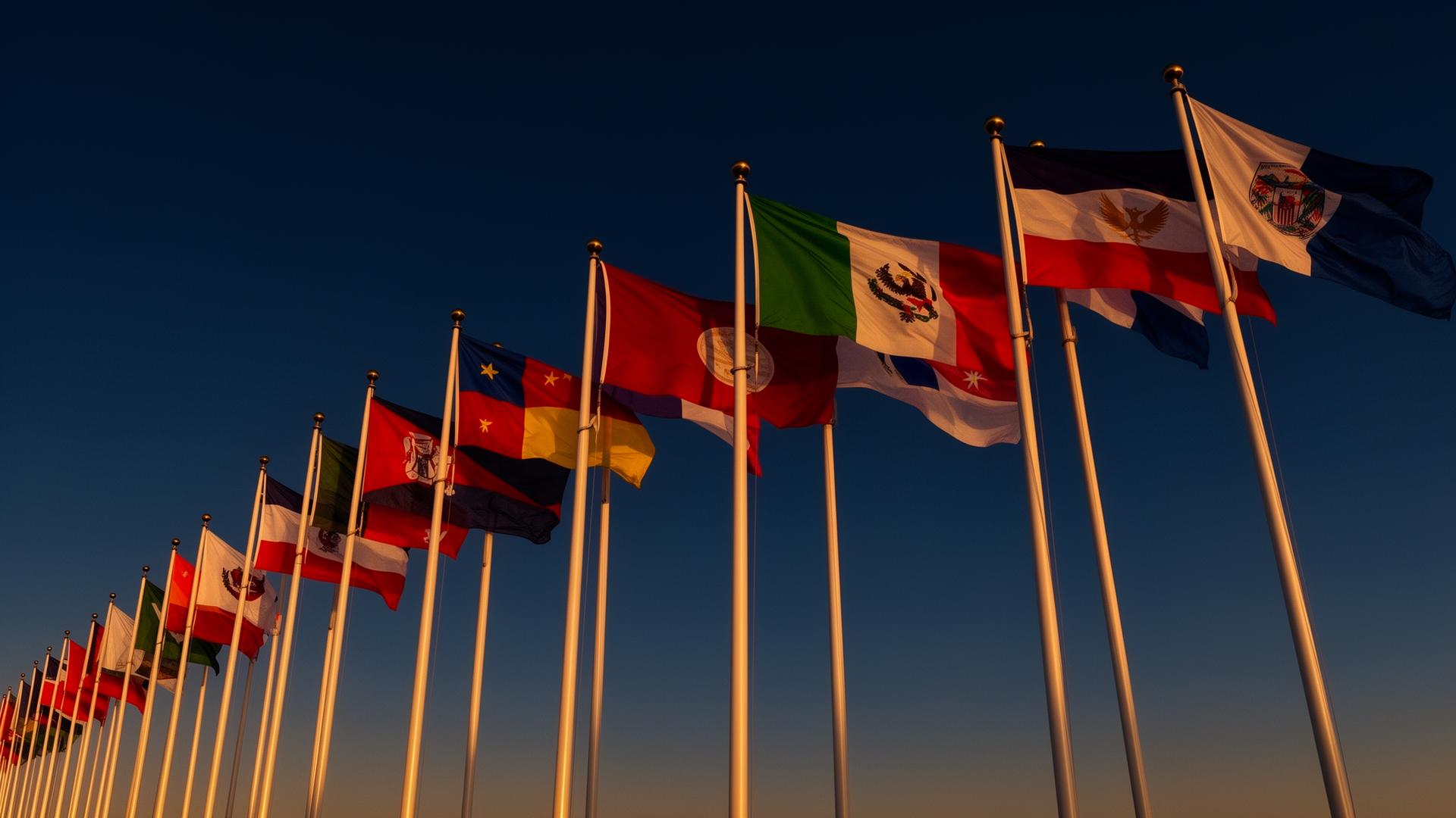 Heavyweight, color-fast national flags of all 195+ recognized countries — available in indoor ceremonial and outdoor heavy-duty constructions.